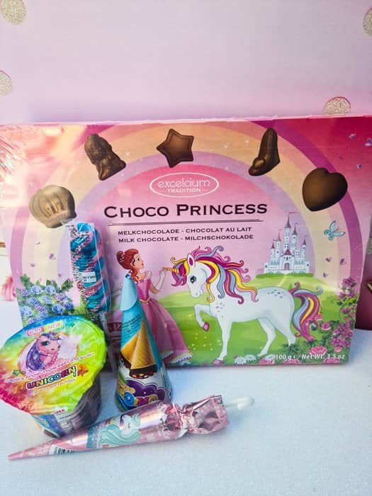 מה במארז ? בונבוניירת חד-קרן וסינר מעוצב, מבחר שוקולדים והפתעות- ממש כמו בתמונה.