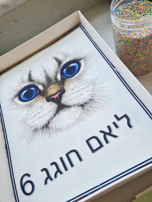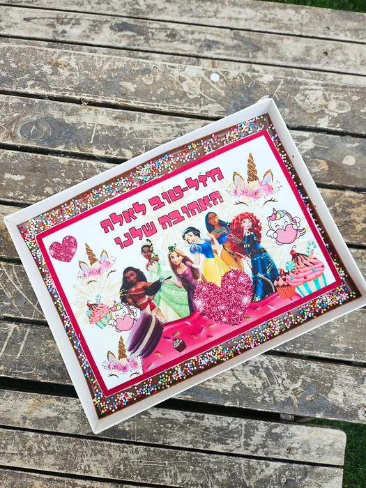 עוגת שוקולד עם גאנש משובח ודף סוכר מעוצב עם הקדשה.