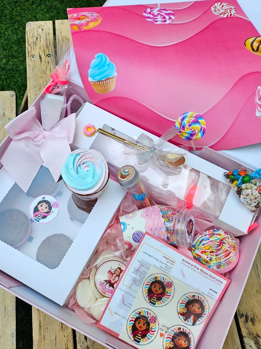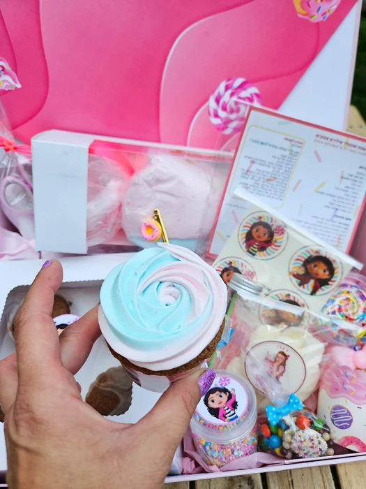 ערכת יצירה להכנת 4 קאפקייקס מעוצבים, עם קצפת ודף סוכר.